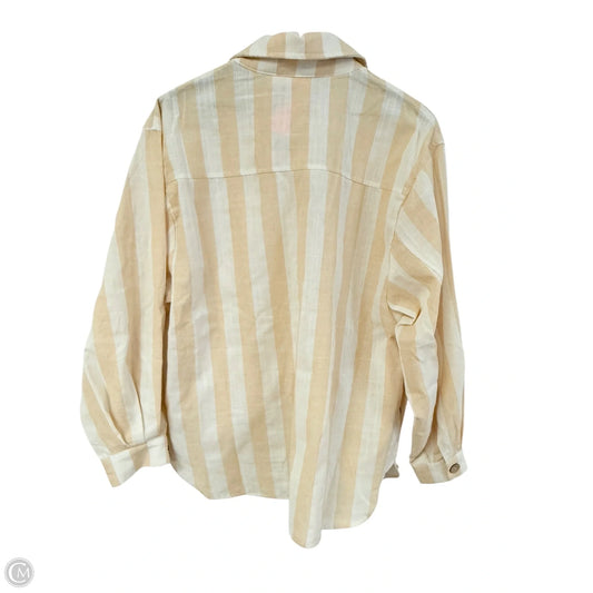Blouse Long Sleeve By Peach Love Cream California In Tan & White, Size: S