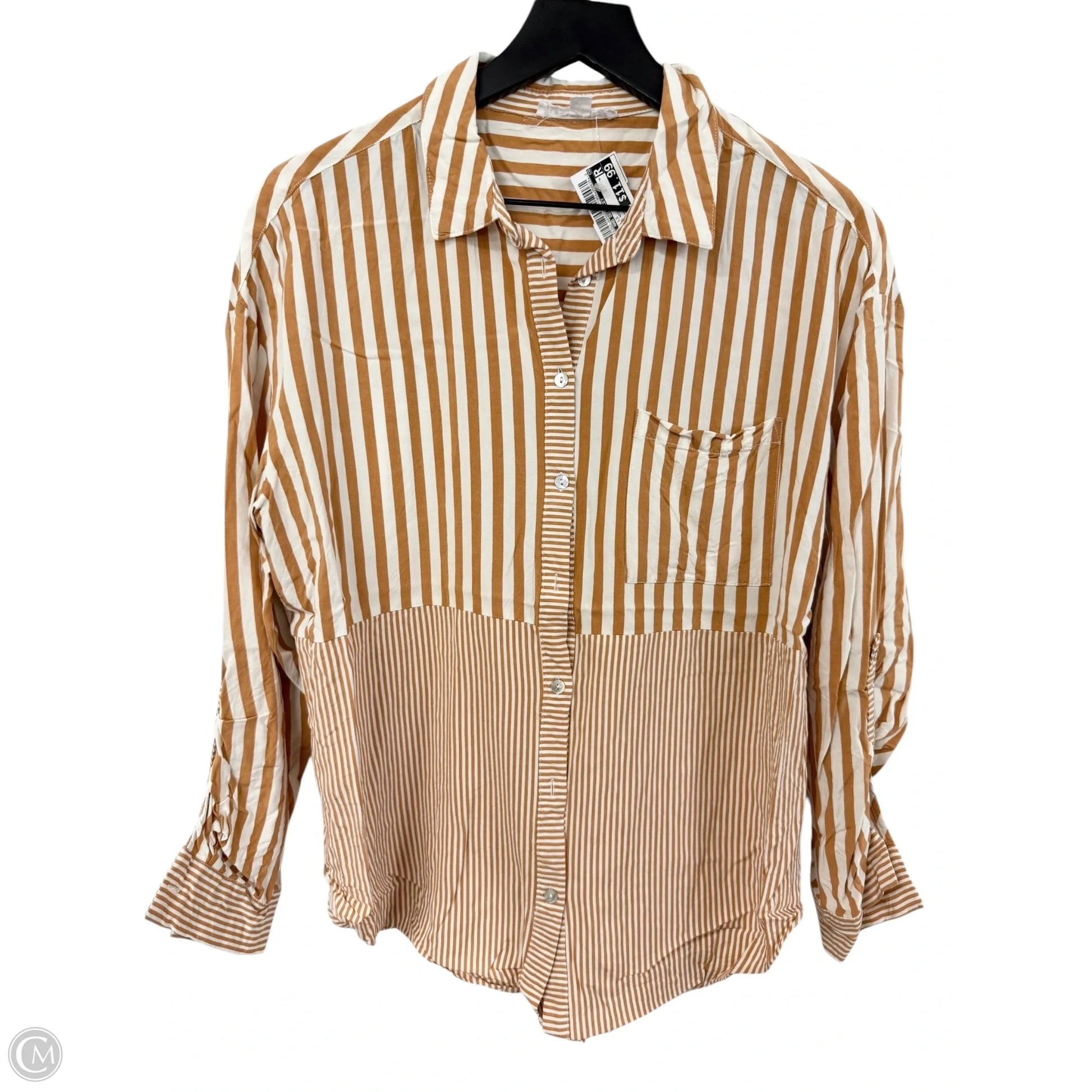 Blouse Long Sleeve By Jane And Delancey In Orange & White, Size: Xl