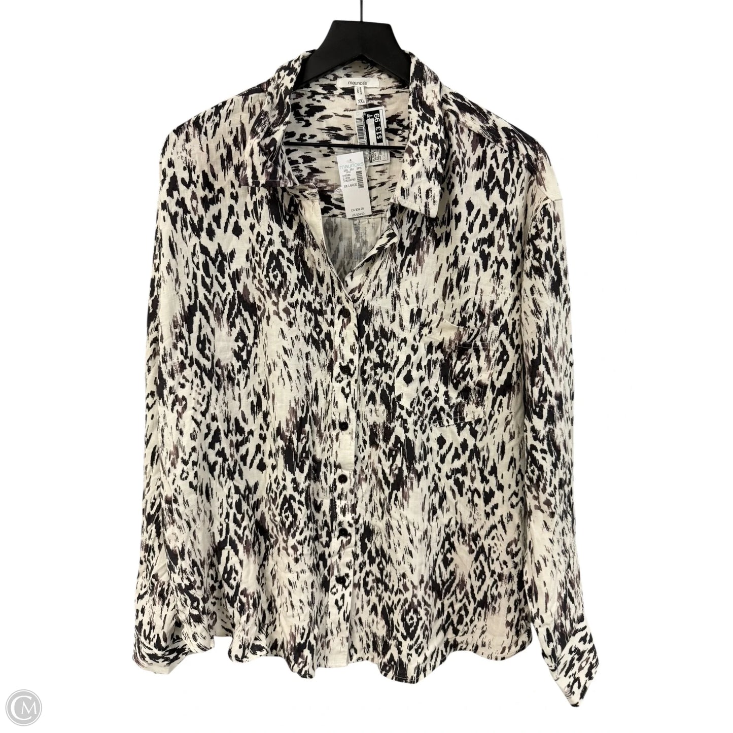 Blouse Long Sleeve By Maurices In Brown & Cream, Size: Xxl