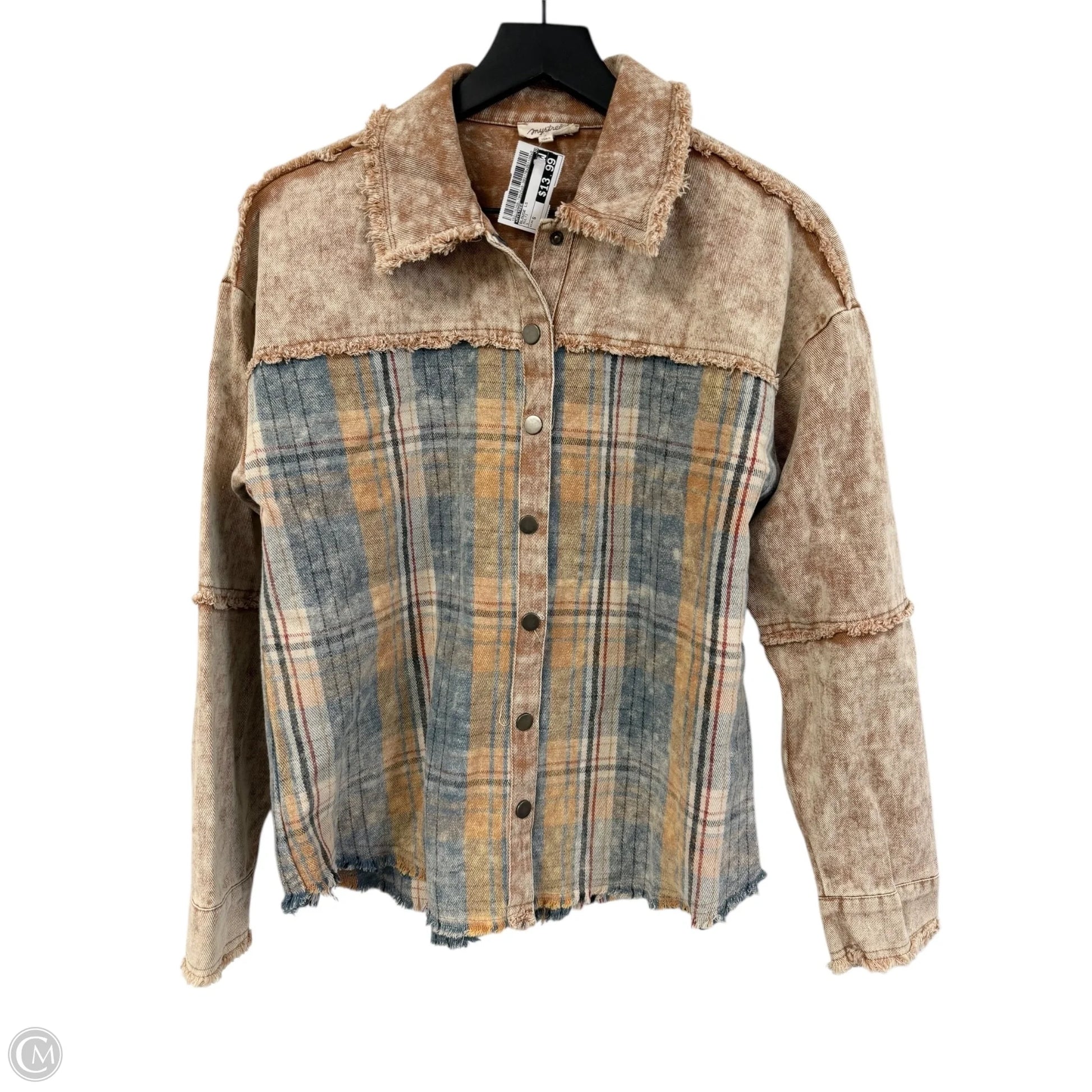 Wrap yourself in comfort and style with this long-sleeve, multi-colored blouse by Mystree in size S. Perfect for any occasion.