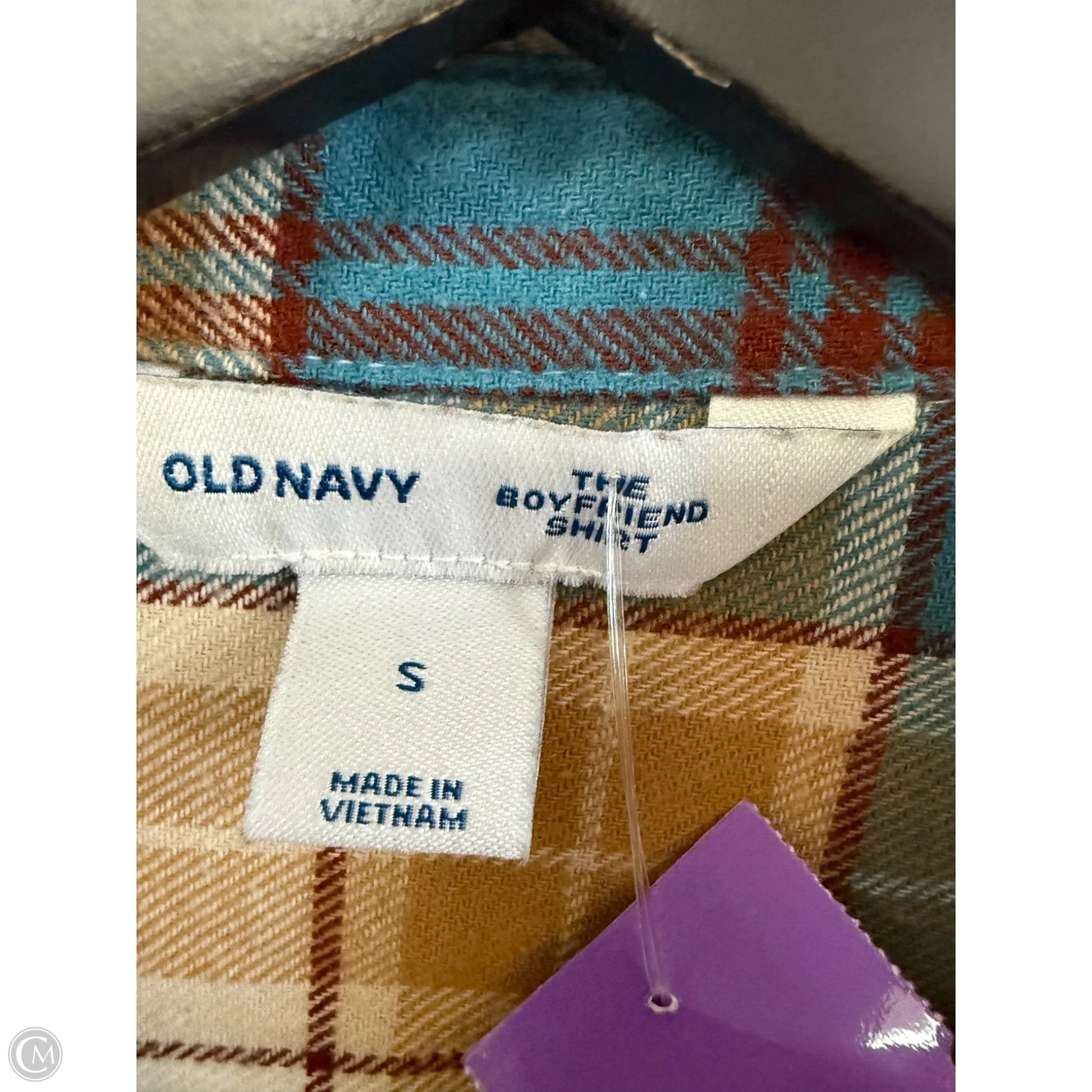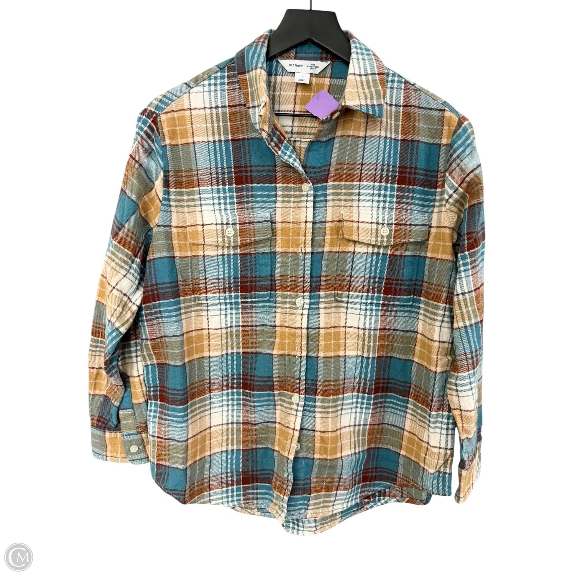 Blouse Long Sleeve By Old Navy In Plaid Pattern, Size: S