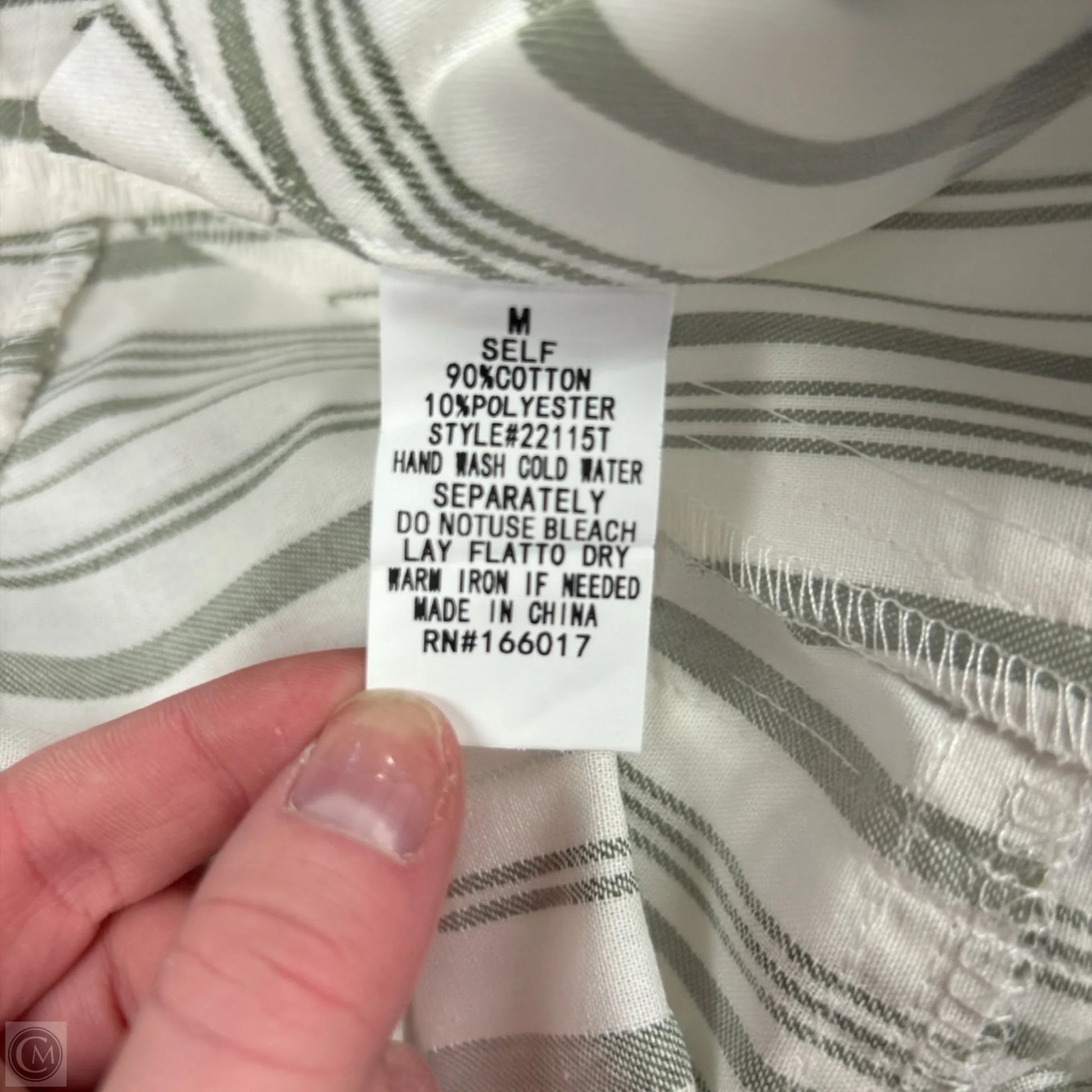 Embrace effortless style with Blue B's green and white blouse in size M. This short-sleeve piece offers a perfect balance of comfort and sophistication.