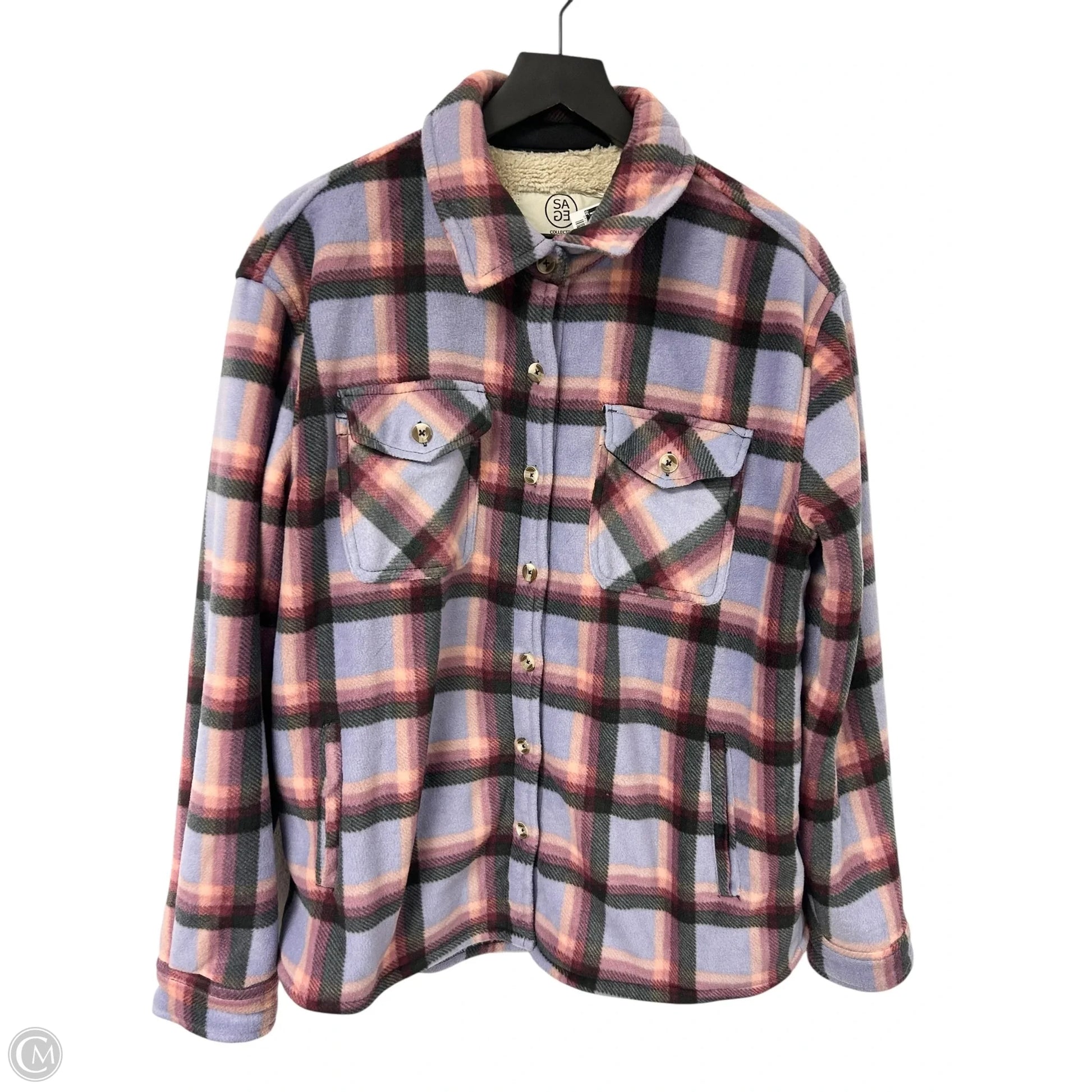 Jacket Shirt By Sage In Black & Purple, Size: L