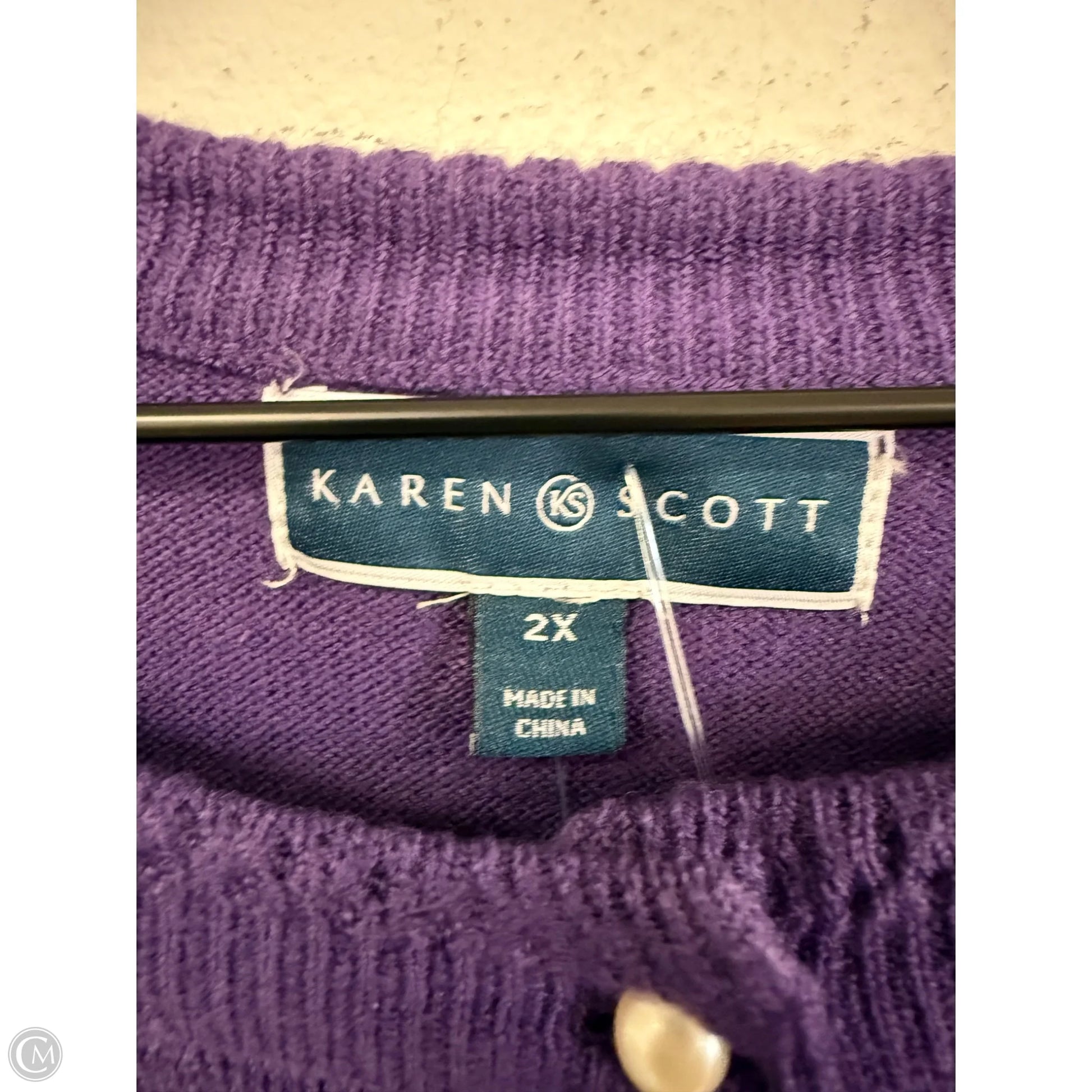 Sweater Cardigan By Karen Scott In Purple, Size: 2x