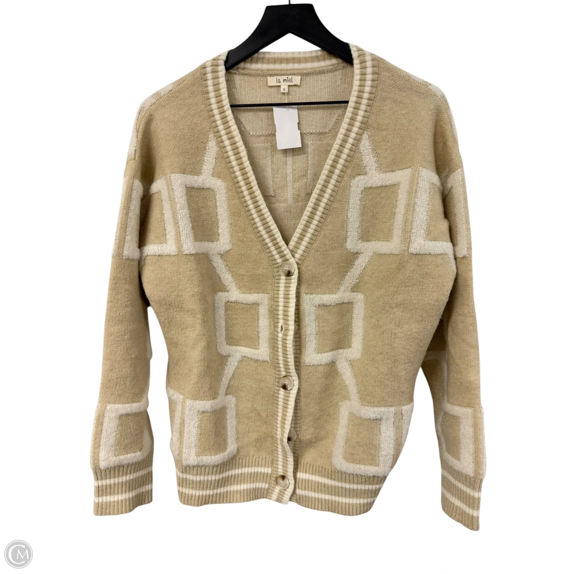 Sweater Cardigan By La Miel In Tan & White, Size: S