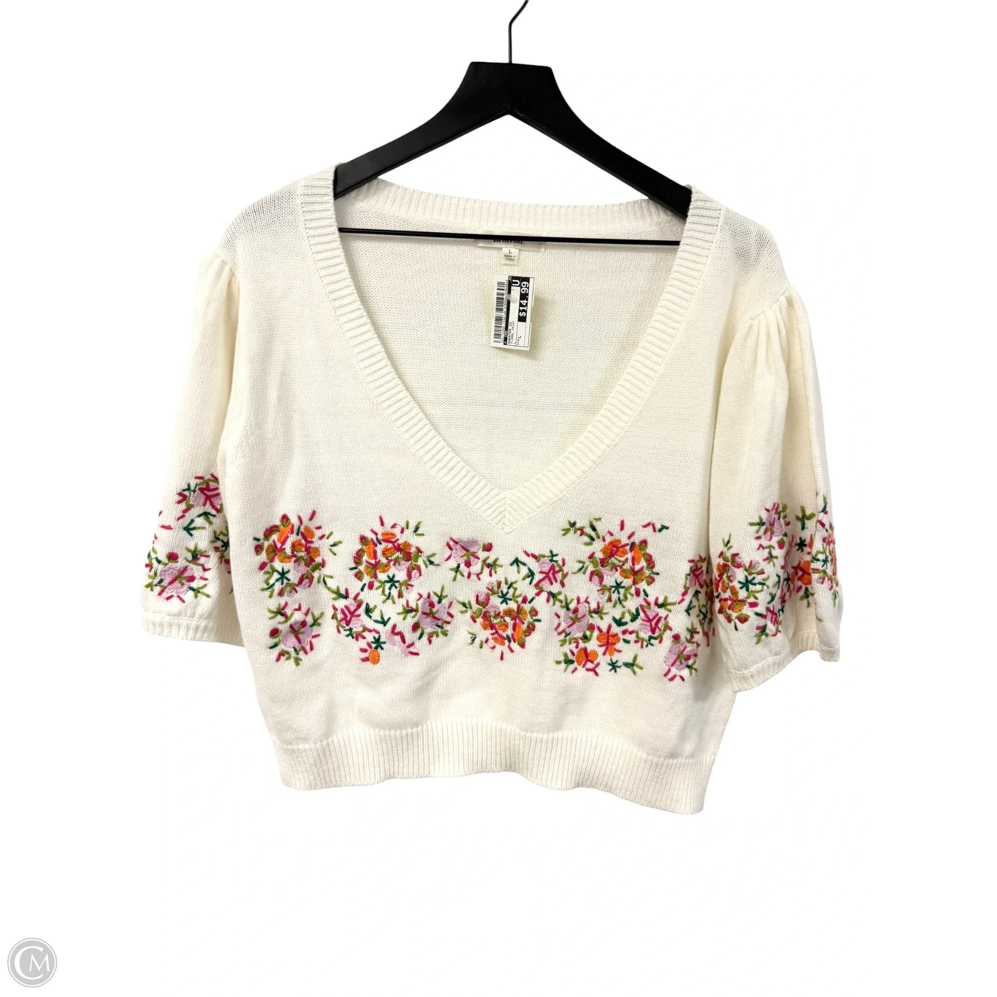 Sweater Short Sleeve By Cmc In Floral Print, Size: L