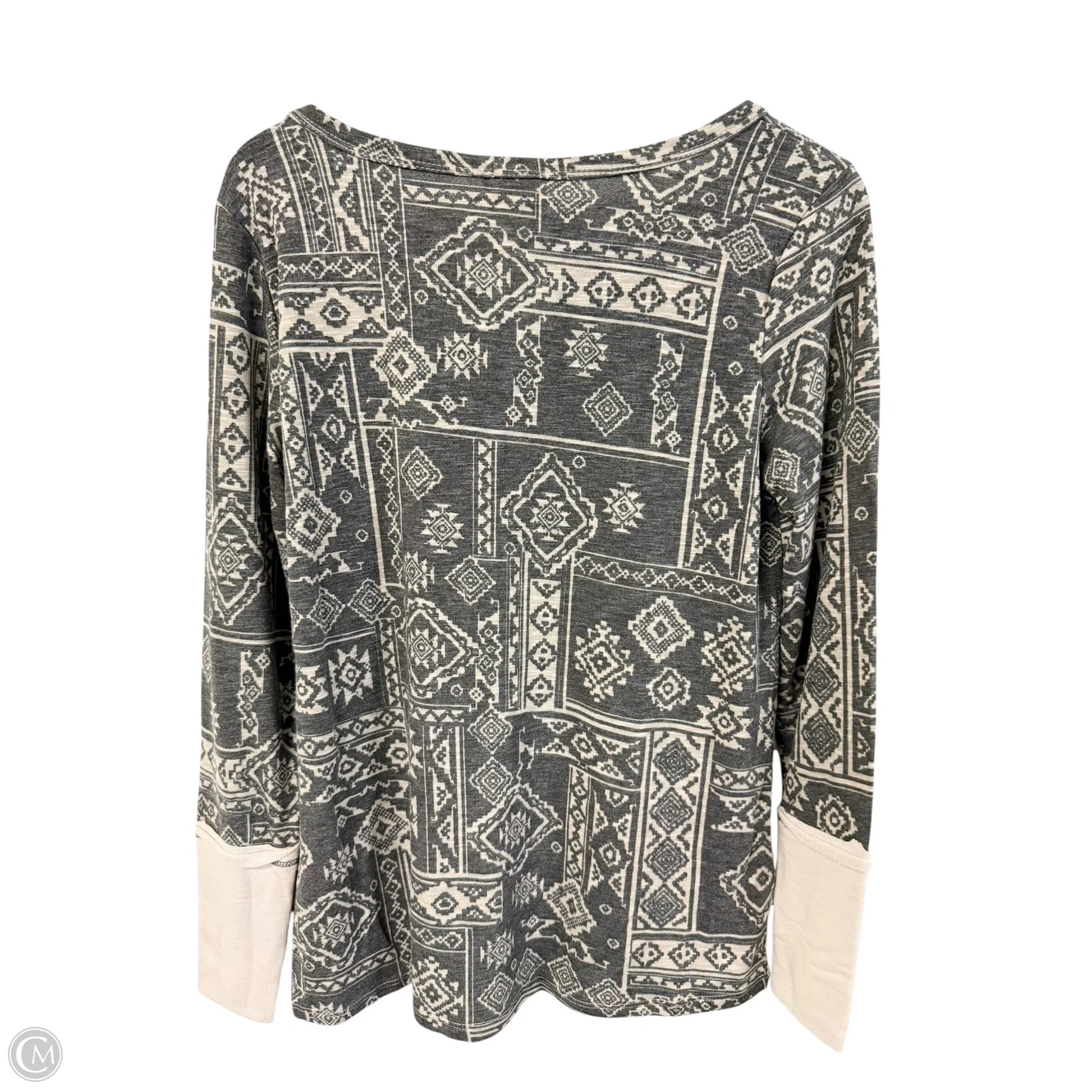 Top Long Sleeve Basic By Bibi In Cream & Grey, Size: M